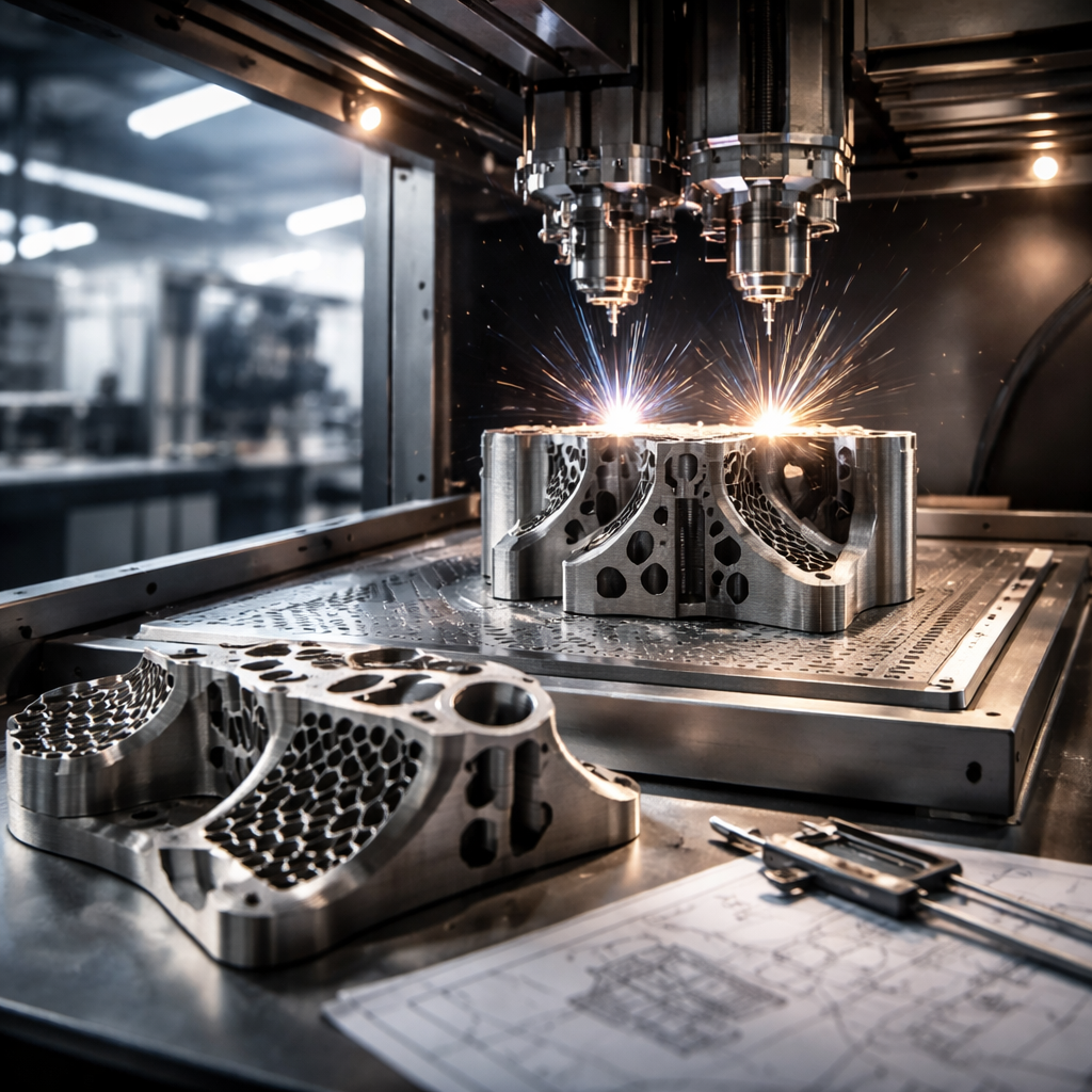 • Design freedom: Complex geometries, internal channels, and consolidated assemblies that replace multiple machined components with a single printed one.