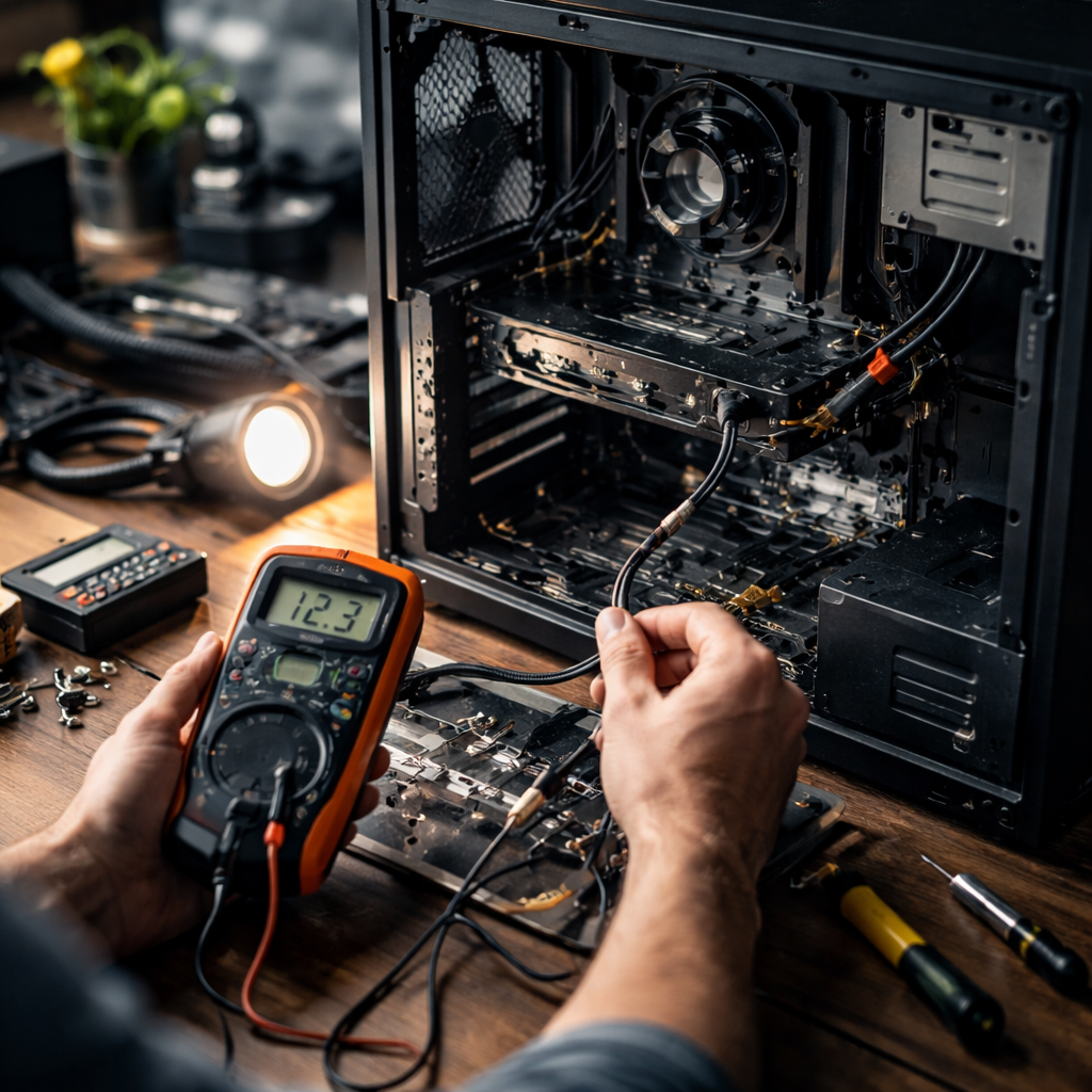 Sometimes the machine does something — fans spin for a second, LEDs flicker, or you hear a beep — but it still refuses to fully start up. This is actually useful information, because it tells you the power supply is delivering some electricity, and the problem is likely happening at a different stage.