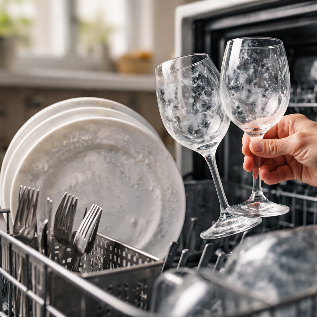Before jumping to solutions, it helps to understand what’s actually happening. Those white, filmy marks on your dishes are almost always caused by one of two things: mineral deposits from hard water or detergent residue that didn’t rinse away properly. Hard water contains dissolved calcium and magnesium. When water evaporates during the drying cycle, these minerals stay behind and form visible spots — especially noticeable on glassware and dark-colored dishes.