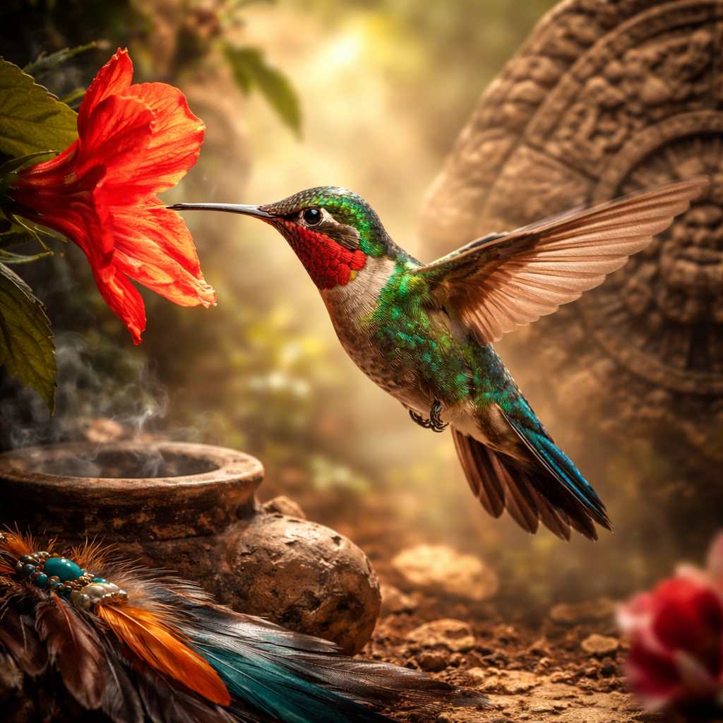 There is something almost physically impossible about a hummingbird. It hovers in place, flies backwards, beats its wings up to 80 times per second, and survives on pure nectar. Ancient peoples who observed these birds had no framework of biology to explain them — so they turned to the sacred. The hummingbird became a living symbol of energy, resilience, and the bridge between the visible and invisible worlds.